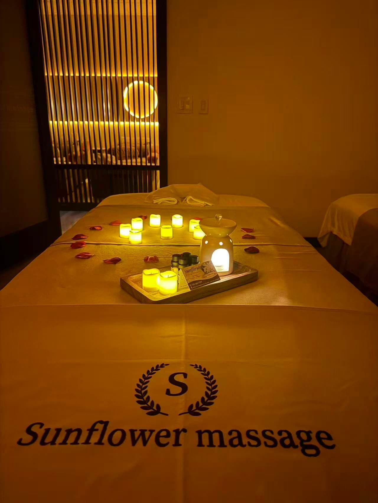 At Sunflower Massage, we are dedicated to providing professional, affordable massage services tailored to your needs. Our experienced therapists offer Swedish massage, deep tissue massage, couples massage, foot massage, combination body and foot treatments, four-hands massage, and focused neck, shoulder, and back therapy. We pride ourselves on a clean, relaxing, and welcoming environment, with flexible service options and value packages designed to help you relax, recharge, and feel your best after every visit.